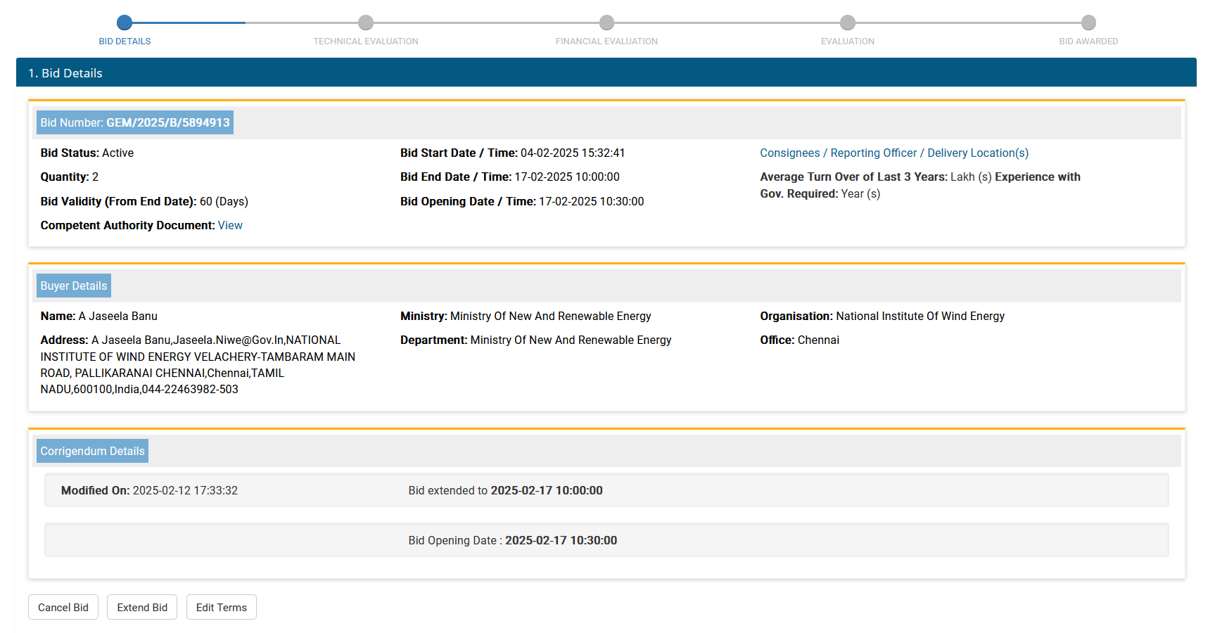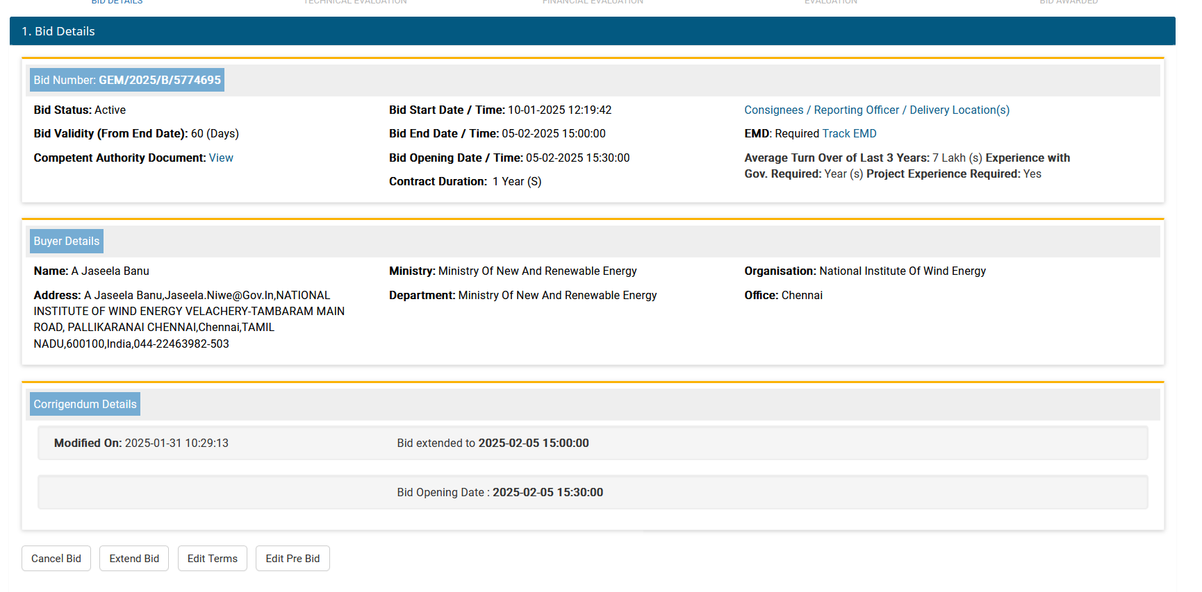 12 Tender for "Comprehensive Annual Maintenance Contract for Senvion 2MW Wind Turbine Generator of National Institute of Wind Energy at Wind Turbine Research Station (WTRS) at Kayathar" due at 11:00 AM on 20.02.2025 opening at 11:30 AM on 21.02.2025
