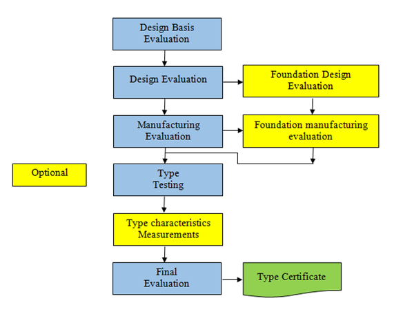 Type certification is a modular approach consisting of modules namely Design Basis Evaluation, Design Evaluation, Type Testing, Manufacturing Evaluation and Final evaluation.
