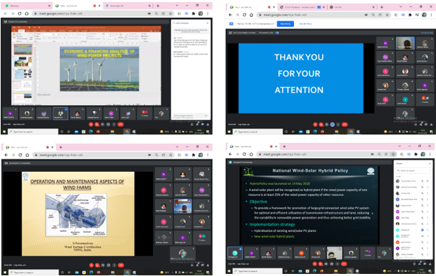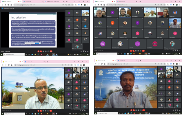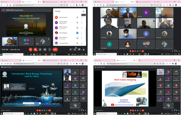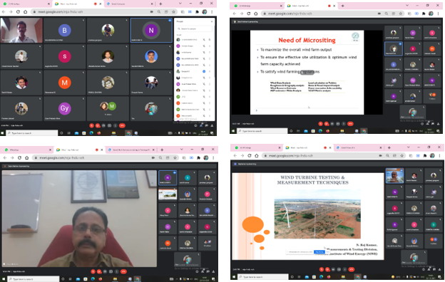 The Skill Development & Training, Infrastructure Management (SDT & IM) Division of NIWE has successfully conducted the Online Customized Training Course on "Wind Turbine Technology" during 21st – 23rd December 2021. The course addressed all aspects of Wind Power starting from introduction to wind and its technology, wind resource assessment, installation and commissioning, Grid integration, operation and maintenance of wind farms, financial and policy aspects along with testing and certification of wind turbines. The course was attended by 25 participants. During the 3 days of course, 12 lectures were scheduled. The course content of the training were handled by Scientists, Engineers of NIWE, wind turbine manufacturers and academicians from premier institutions, who have many years of experience in the field.