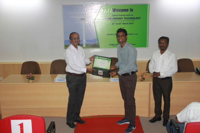 The SDT Division of NIWE had successfully conducted the special training course on "WIND ENERGY TECHNOLOGY" specially for the scientists of Ministry of New and Renewable Energy (MNRE) held during 22nd to 28th March 2021. The course addressed all the aspects of Wind Power starting from wind from wind resources assessment to project implementation and operations & maintenance aspects in a focused manner. 13 numbers of participants with one coordinator had attended the course.