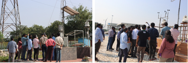The participants visited the Renewable Energy facilities available in NIWE campus, such as, Vertical & Horizontal Axis Small Wind Turbines, Wind-Solar Hybrid System, Wind Turbine Nacelle Assembly facility, Metrological Mast, Biogas Plant and SRRA Station.