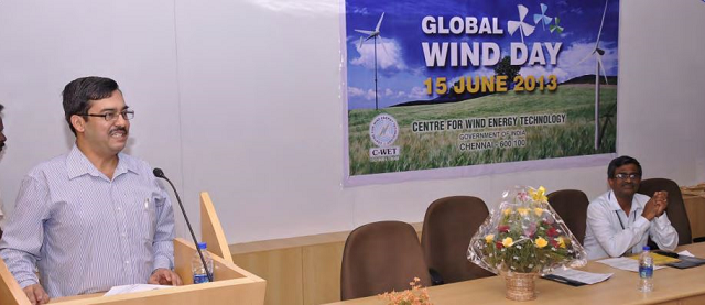 Global Wind Day 2013 was celebrated on 15th June 2013 at C-WET. As part of the programme, a special lecture was organized at the Conference Hall, C-WET on “Success of Wind Energy in Tamil Nadu and its Sustainability” delivered by Shri. Rajesh Lakhoni IAS, Principal Secretary, Energy Department, Tamil Nadu marked the year's Global Wind Day. All C-WET staff and some of the Tamil Nadu Electricity Board officials participated in the event. The issues related to the Wind Energy and Tamil Nadu were highlighted in his special lecture. The Chief Guest, Shri. Rajesh Lakhoni IAS was taken to C-WET campus tour, where the C-WET activities and services were explained.