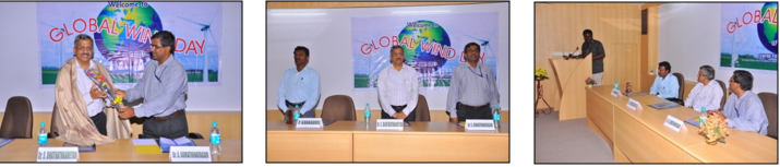 As part of the Global Wind Day 2011 celebration, slogan-writing contest on wind energy was organized for C-WET staff and prizes were distributed to the best three slogans. In the contest, 49 C-WET staff members participated and top 3 slogans were selected by the jury. Global Wind Day 2011 celebration not only focused on wind energy, but it also looked at the environmental benefits of renewable energy and other alternative energy sources such as Hydrogen. Dr. K. S. Dhathathreyan, Head of Centre for Fuel Cell Technology, Chennai was the Special Invitee on the occasion to deliver a special talk on “Sustainable Hydrogen Energy – Role of Wind Power” and gave away the prizes to the winners of slogan writing contest.