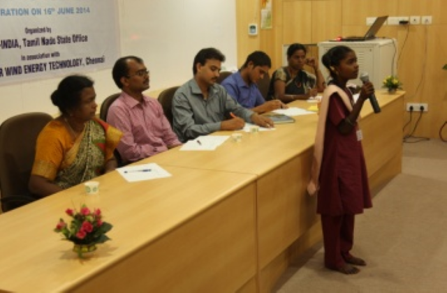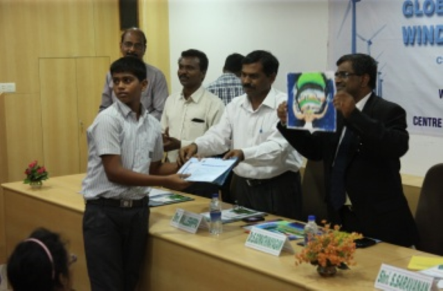 Global Wind Day has been celebrated on 15th June to create awareness about the advantages and achievements of wind power. Since 2009, NIWE is celebrating the Day with various events among the School Children. To proactively reach the future kids, NIWE this year signed a MoU with World Wide Fund for Nature (WWF) – India. On the eve of Global Wind Day, NIWE - WWF jointly engaged over 100 School Children from various parts of the State at NIWE campus and shared basic knowledge about wind and renewable energy. As part of the celebration, Drawing and Elocution competitions on Wind Energy were conducted for the children and prizes were distributed to the winners. Dr. Malleshappa, I.F.S., Director Environment, Department of Environment, Government of Tamil Nadu was the Chief Guest and delivered special address to the students and their teachers. To create awareness in a bigger level, a book “Student Guide on Renewable Energy” was prepared and released on the day with lot of information about renewable energy including games that induce children to think on the Renewable energy. The Student Guide will be translated in different languages and distributed in larger community.