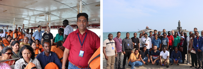 Participants visited and enjoyed the cultural place visit at the Southern tip of India which comprises of the Thiruvalluvar Statue and Vivekananda Rock Memorial, Kanyakumari. They were also thrilled by the boat ride from the sea shore to the Rock Memorial which took about 25 minutes of travel.