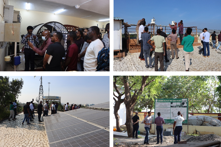 The participants have also visited the Renewable Energy facilities available in NIWE campus, such as, Water Pumping Windmill, Vertical and Horizontal Axis Small Wind Turbines, Wind-Solar Hybrid System, Wind Turbine Nacelle Assembly facility, Meteorological Mast, Biogas Plant and SRRA Station and Wind Energy Training Systems.