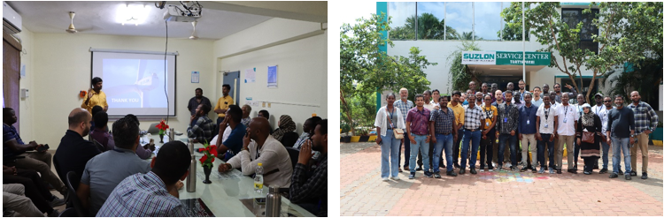The participants were taken on a study visit to the southern part of Tamil Nadu to visit Wind Turbine Test Station at Kayathar, where they got exposure on small and large wind turbine testing process apart from visiting wind turbine service providers – Gearbox repairs at Narayana Wind Power Pvt. Ltd., Aralvaimozhi, operation and maintenance of wind turbines at RS Windtech Engineering Limited, Aralvaimozhi, data collection and electrical support at Wind World Clean Energy Forever, Manur and centralized monitoring station at Suzlon Global Services Limited, Thattaparai.