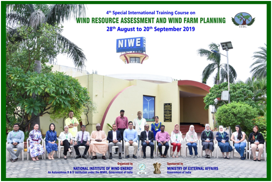 The Skill Development and Training (SDT) Division of NIWE had successfully conducted the Special International Training Course on "Wind Resource Assessment and Wind Farm Planning" during 28th August to 20th September 2019. This is a special training course for ITEC partner countries sponsored by the Ministry of External Affairs (MEA), Government of India under ITEC programme. The course was attended by 16 Participants from 9 countries (Ethiopia, Tunisia, Mongolia, Iraq, Syria, Morocco, Nigeria, Sri Lanka, and Bangladesh).