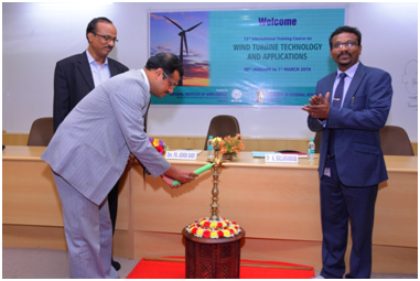 The course content of the training were handled by Engineers of NIWE along with professionals from Wind Turbine Industries, Utilities, and Premier Academic Institutions, who have years of experience in the field. During the 31 days course, 43 classroom lectures were held apart from practical training, study visits to wind farm and wind Turbine manufacturing factory. The general practical training with Wind Resource Assessment, instrumentation, Testing & R&D equipment’s was also organized.