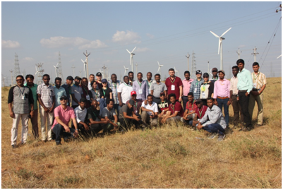 The participants were taken to southern part of Tamil Nadu to visit Wind Turbine Test Station and Wind Turbine Research Station at Kayathar, where they got exposure on small and large wind turbine testing process apart from visiting wind farms in and around Kayathar, Thenkasi and Kanyakumari, where various capacities, models and makes of wind turbines are available.
