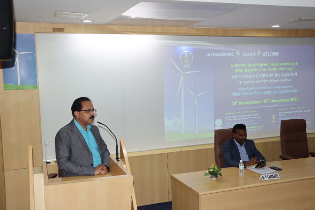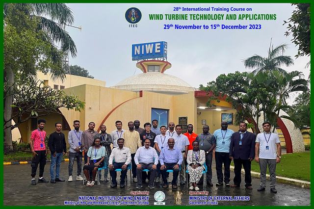 The SDT Division has successfully conducted the 28th International Training Course on "Wind Turbine Technology and Applications" during 29th November to 15th December 2023, sponsored by Ministry of External Affairs (MEA), Government of India under ITEC programme. The course addressed all aspects of Wind Power starting from introduction to wind and its technology, wind resource assessment, installation and commissioning, operation and maintenance aspects of wind farms in a focused manner along with financial and policy aspects. 21 participants attended the course from 12 ITEC countries, Eritrea, Ethiopia, Fiji, Ghana, Kenya, Lesotho, Mozambique, Myanmar, Sri Lanka, Thailand, Turkmenistan and Uganda.