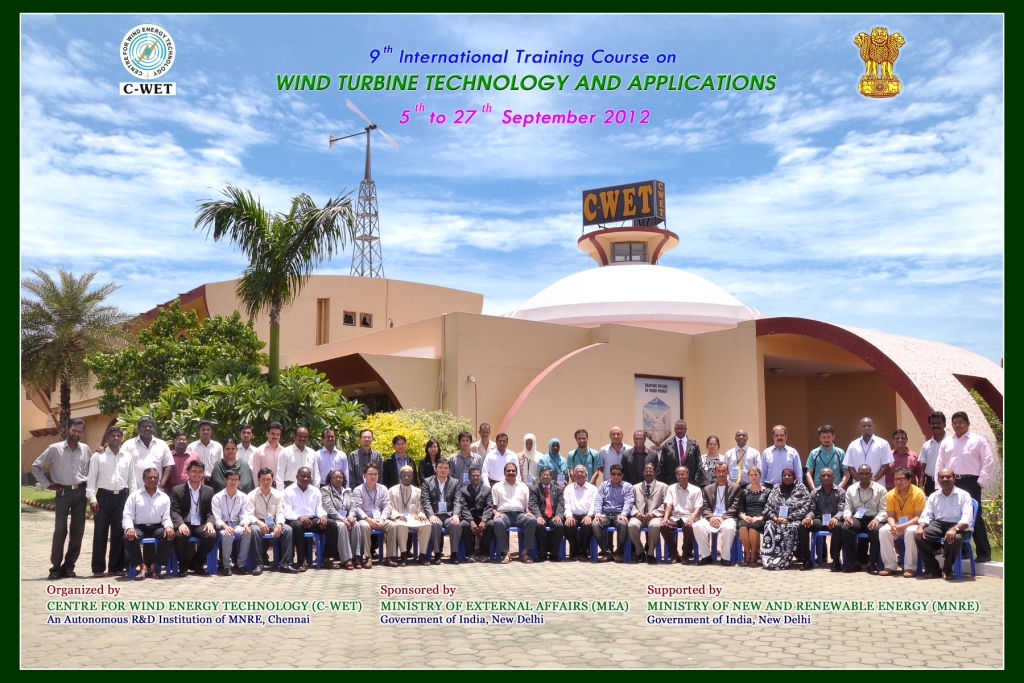 CWET's ITCS unit had successfully organized the Ninth International Training course on “Wind Turbine Technology and Applications” during 5th – 27th September 2012 to address all aspects of Wind Power starting from wind resource assessment to installation, operation and maintenance aspects of wind farms along with financial analysis and CDM benefits. This is a special training course for Indian Technical and Economic Co-operation (ITEC) and Special Commonwealth Assistance for Africa Programme (SCAAP) partner Countries organized by Centre for Wind Energy Technology, Chennai, India under the ITEC / SCAAP programme of Ministry of External Affairs (MEA), Government of India with the support of Ministry of New and Renewable Energy (MNRE), Government of India. The course was attended by 31 participants from 22 countries (Afghanistan, Ethiopia, Ghana, Iraq, Kazakhstan, Kenya, Lesotho, Malaysia, Mongolia, Myanmar, Niger, Nigeria, Peru, Philippines, South Africa, Sri Lanka, Sudan, Syria, Thailand, Tanzania, Ukraine and Vietnam).