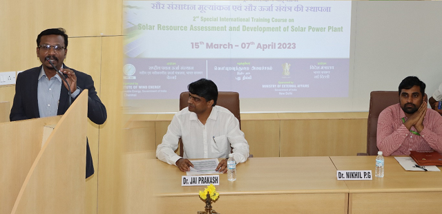 The inaugural function commenced with the Welcome Address by the Course Coordinator, Dr. P. Kanagavel, Director & Head, SDT & IM Division, NIWE. The course was inaugurated by Dr. Jai Prakash, Deputy Director General, National Institute of Solar Energy and Dr. Nikhil PG, Assistant Director (Tech.), National Institute of Solar Energy was present during the inaugural function.