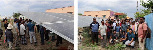 The participants were taken to the southern part of Tamil Nadu to visit Wind Turbine Test Station at Kayathar, where they got an exposure on wind - solar hybrid system, Solar Water pump system at Virudhunagar, Tamil Nadu and 100 MW Solar Power Plant of NLC India Limited at Kayathar.