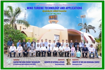 The 13th International Training Programme on “Wind Turbine Technology and Applications” was successfully organized by the ITCS unit during 07th to 30th May 2014 to address all aspects of Wind Power starting from wind resource assessment to installation, operation and maintenance aspects of wind farms along with financial analysis and CDM benefits. This is a special training course for ASEAN Countries sponsored by the Ministry of External Affairs (MEA), Government of India under the ASEAN –India Cooperation Fund programme and supported by the Ministry of New and Renewable Energy (MNRE), Government of India. The course was attended by 22 participants from 8 countries (Cambodia, Indonesia, Laos, Malaysia, Myanmar, Philippines, Thailand and Vietnam)