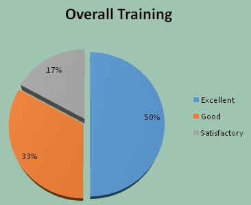 Feedback about the training has been collected from all the participants on various aspects of the training and the overall response is 50% Excellent, 33 % Good and 17% is satisfactory.