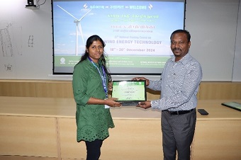 During the Certificate distribution, some of the participants shared their feedback and stated that the training had encouraged a positive learning environment and found it very beneficial. They also expressed their appreciation to NIWE for organizing the training course. Thereafter, Dr. Rajesh Katyal, Director General, NIWE and Dr. P. Kanagavel, Director & Head, SDT Division, NIWE distributed the Course Certificates to all the participants. Dr. P. Kanagavel, Director & Head, SDT Division, NIWE thanked the participants for their appreciation.