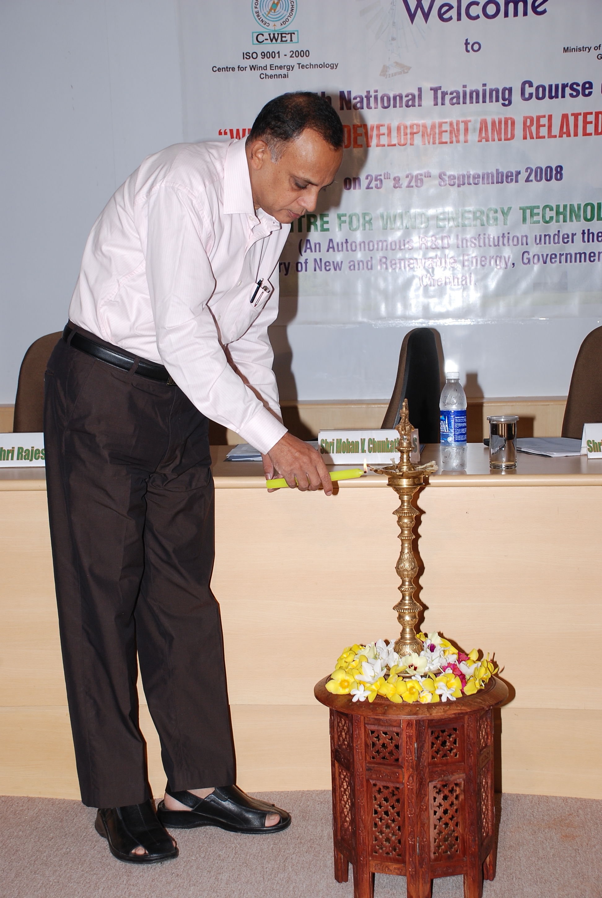 Information, Training and Commercial Services (ITCS) Unit had successfully organized the Sixth National training course on “WIND FARM DEVELOPMENT AND RELATED ISSUES” on 25th & 26th September 2008 to address all aspects of Wind Power starting from Wind Resource Assessment to project implementation and operations & maintenance in a focused manner. The course was attended by 62 participants from Academic Institutes, Industry, State Nodal Agencies, Developers and Consultants from various parts of the country. The training course was inaugurated by Shri. Mohan Verghese Chunkath, IAS, Chairman and Managing Director, Tamil Nadu Energy Development Agency (TEDA), Chennai.